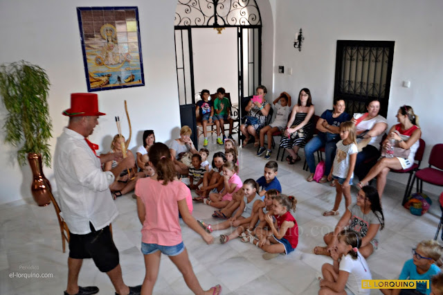 El atrio del convento de la Virgen de las Huertas, Patrona de Lorca, acogió ayer un año más el cuentacuentos para los más pequeños de la casa. En este, padres y niños disfrutaron de los artistas Raul Rey y Marta Gutierrez. Al final del evento todos los niños obtuvieron sus bolsas de chucherías de la misma mano de los infantes de la Virgen.