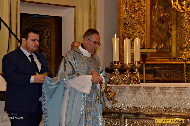 La Hermandad de Labradores, Paso Azul, celebró ayer jueves el XIX Aniversario de la Coronación Canónica de la Santísima Virgen de los Dolores.
