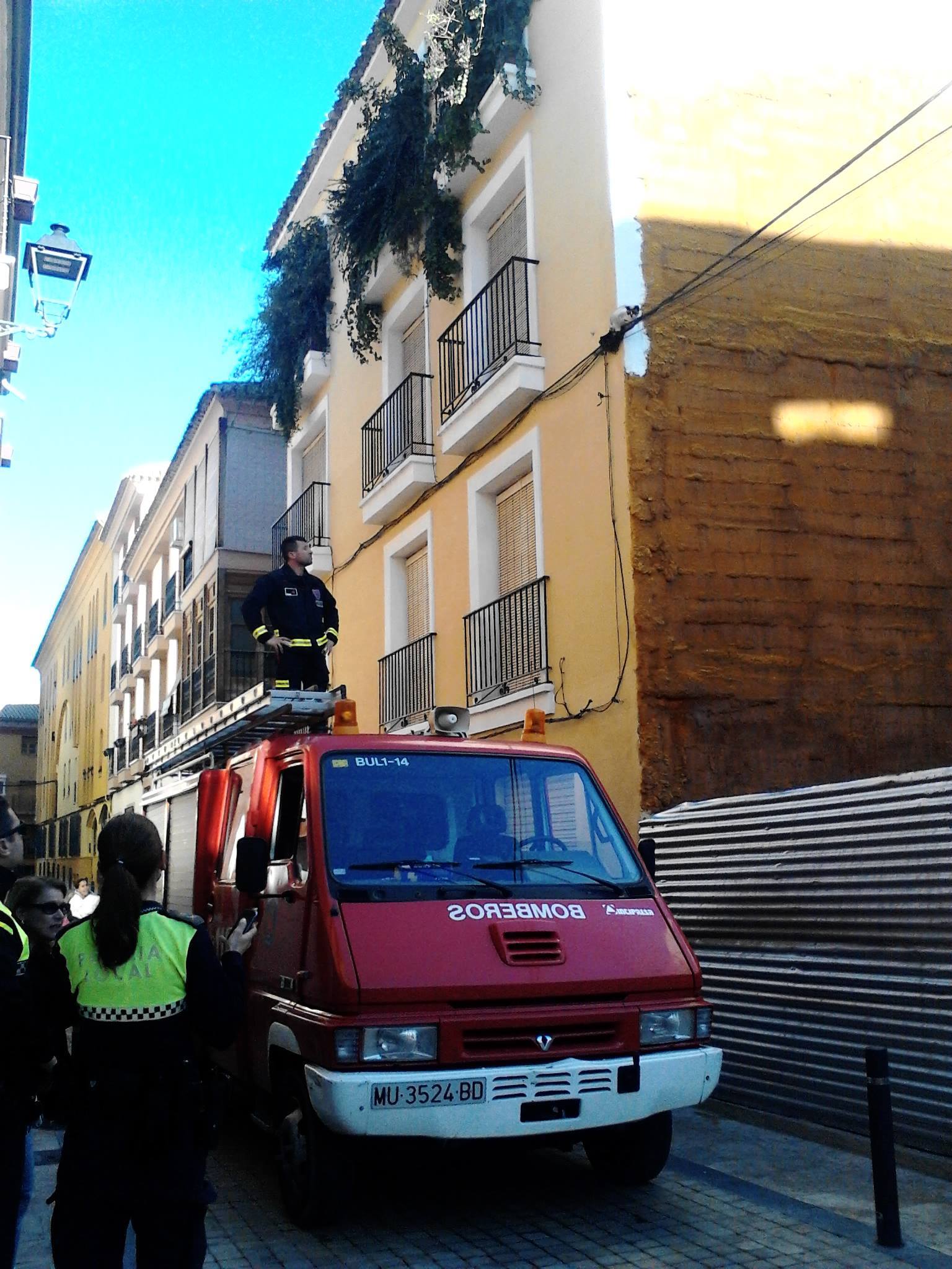 Bomberos rescatan a una gata en la Calle Rubira de la ciudad de Lorca