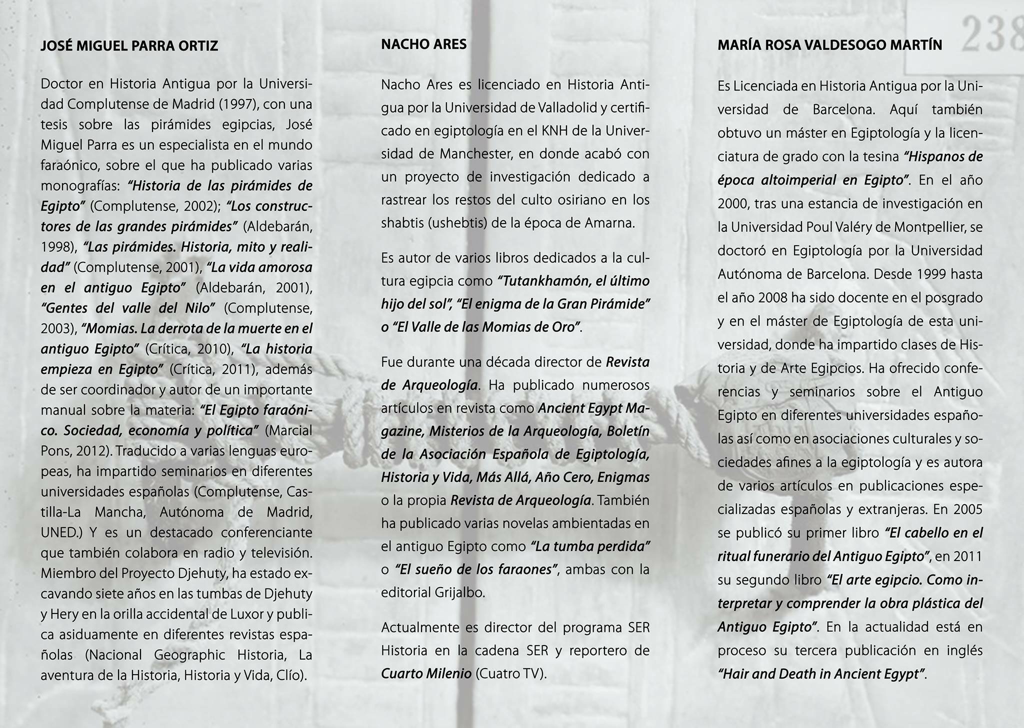 Tras esta última se pondrá la guinda al pastel con una mesa redonda de debate titulada ‘Nuevos hallazgos’, en la que a partir de las 12:30 horas María Rosa Valdesogo Martín, Nacho Ares y José Miguel Parra Ortiz se sentarán en la misma mesa junto a los asistentes.