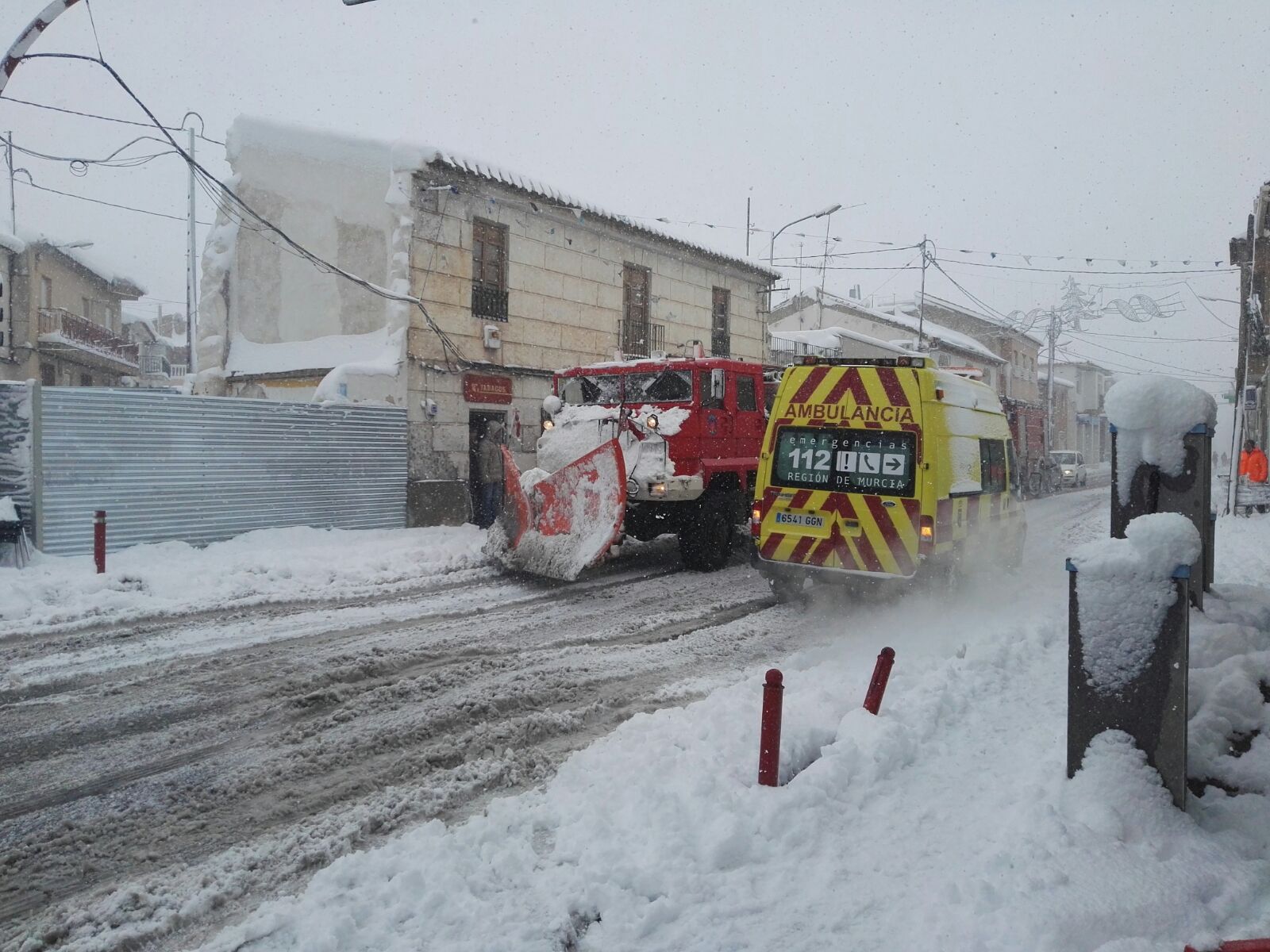 Quitanieves en la pedanía lorquina de La Paca, incomunicada por la nieve este jueves. // Blas Jesús el-lorquino