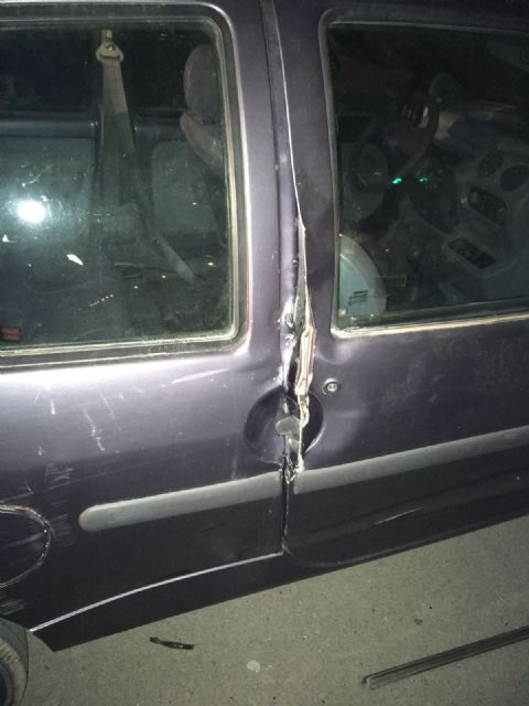 Los agentes pudieron comprobar en el lugar del suceso cómo esta persona se encontraba con una barra metálica, intentado abrir la puerta del vehículo que es propiedad de un vecino de Totana, que al verlo informó a los agentes, que le han roto la puerta de su vehículo.