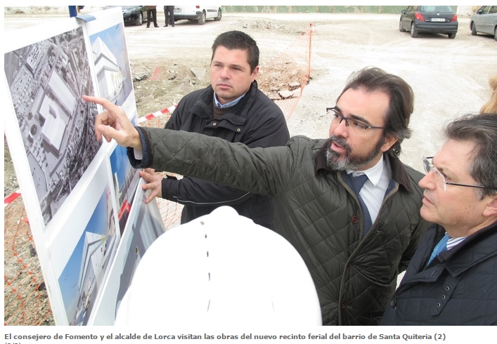 El consejero de Fomento e Infraestructuras, Pedro Rivera, y el alcalde de Lorca, Francisco Jódar, visitaron recientemente las obras de la nave de exposición de ganado del nuevo Centro de Ferias y Congresos de Santa Quiteria, que ya han dado comienzo.