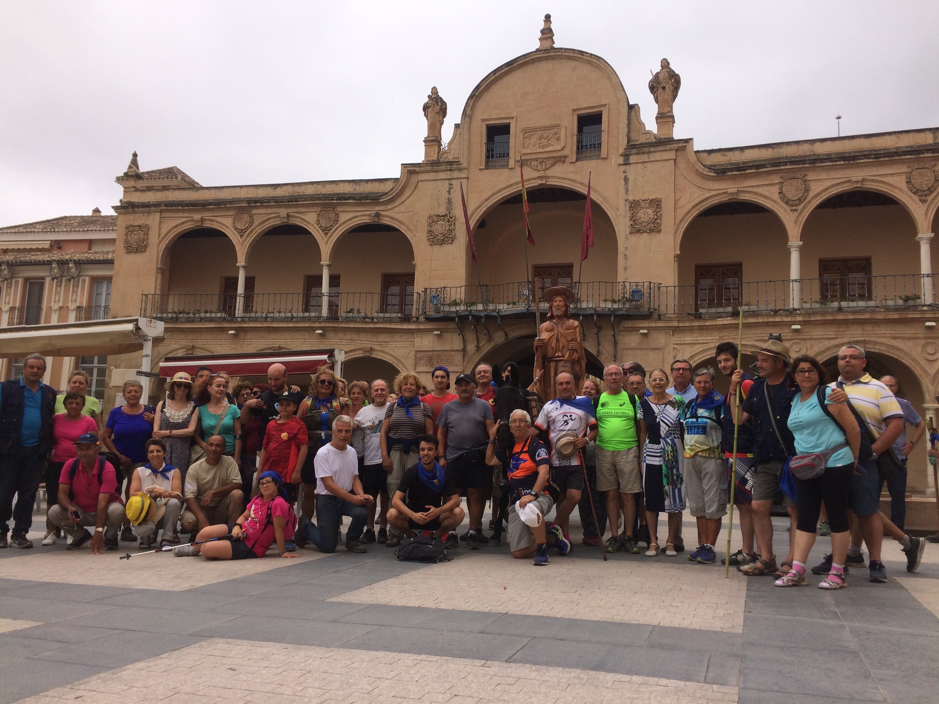 10 de agosto de 2017. El Vicealcalde de Lorca, Francisco Montiel, ha recibido esta mañana a una expedición de peregrinos y arrieros que realizarán desde la Ciudad del Sol la ruta a Caravaca con motivo del Año Santo Jubilar. Concretamente se trataba de un grupo de 40 peregrinos procedentes de Salamanca y Almería que forman parte de la Asociación de Amigos del Camino de Santiago de la Vía de la Plata, colectivo de la población salmantina de Fuenterroble de Salvatierra. Este colectivo se ha dedicado durante las 2 últimas décadas a organizar peregrinaciones a Roma, Jerusalén, Santiago, Santo Toribio de Líébana o San Olav en Noruega, desplazándose este 2017 hasta Caravaca.