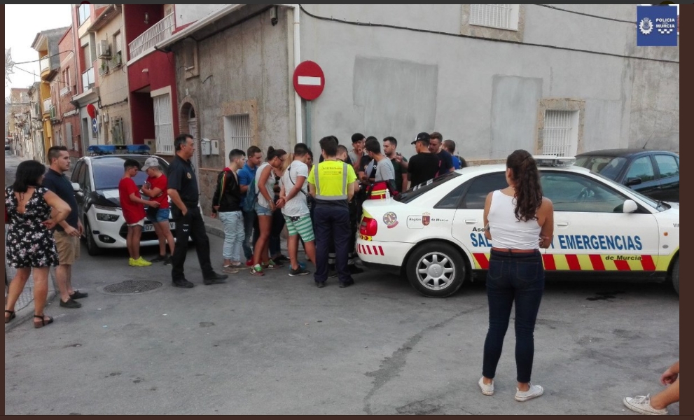 Minutos después se recibe llamada de la Sala 092, que en la misma pedanía en el Carril de la Generala ASEMUR estaba asistiendo a un joven que había sido agredido, una vez en el lugar se comprueba que se trataba de A.H.M. de 23 años, siendo el agresor del anterior, manifestando que fue agredido por varias personas y que se había defendido con una navaja que portaba, arrojando la misma en el interior del patio de una vivienda, siendo localizada en ese lugar por los agentes, teniendo 8 cms. de hoja.