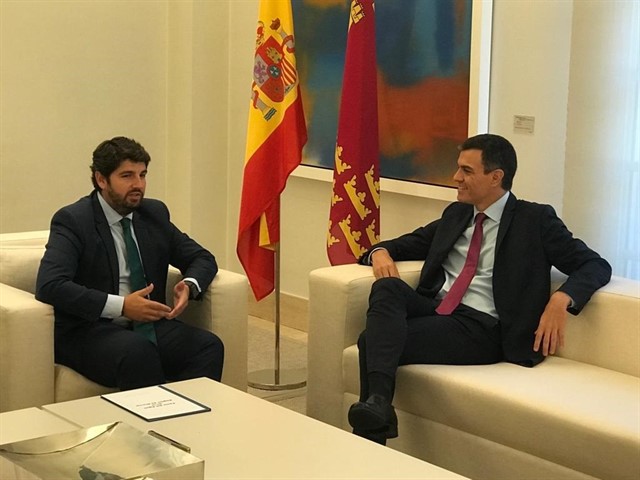 Las ayudas a los afectados por el terremoto de Lorca fueron abordadas en la reunión entre Pedro Sánchez y Fernando López Miras. Además de estar ejecutándose las ayudas ya previstas, el Gobierno de España prevé un nuevo convenio con una aportación estatal de cinco millones de euros y la prórroga de los plazos previstos en los actuales convenios.
