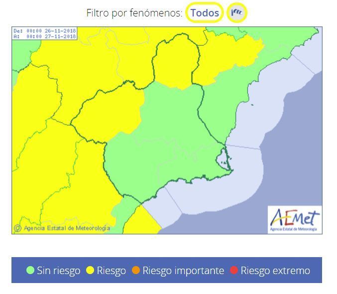 La Agencia Estatal de Meteorología (Aemet) mantiene aviso AMARILLO por fenómenos costeros en Campo de Cartagena y Mazarrón hasta las 15:00h. de hoy con intevalos de Noroeste de fuerza 7.