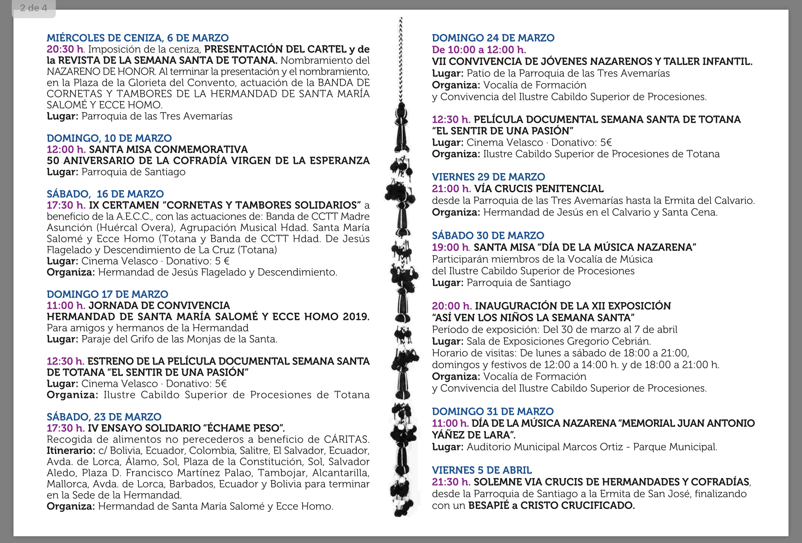 Programa Semana Santa de Totana 2019