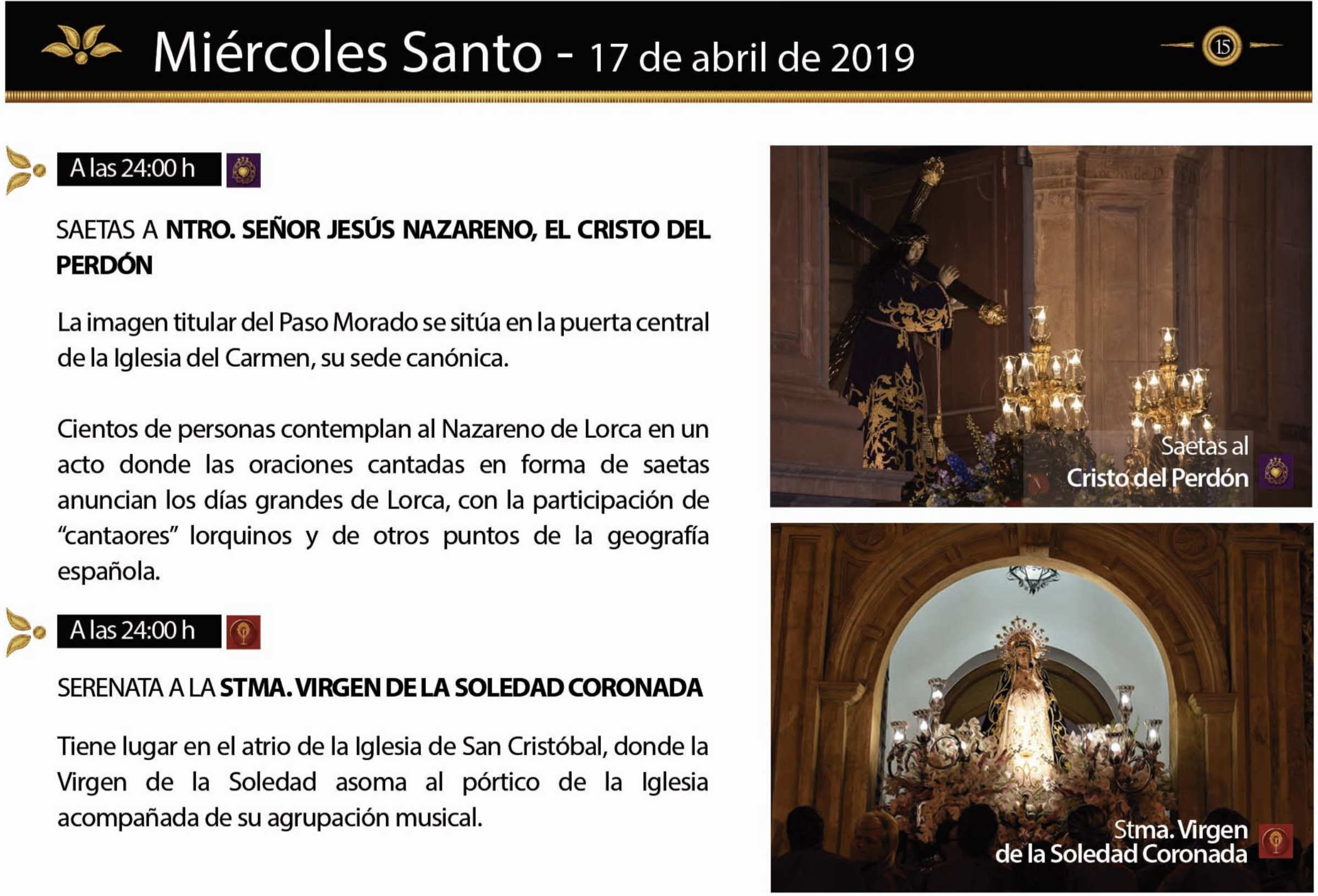 Actos y horarios de este Miércoles Santo en Lorca