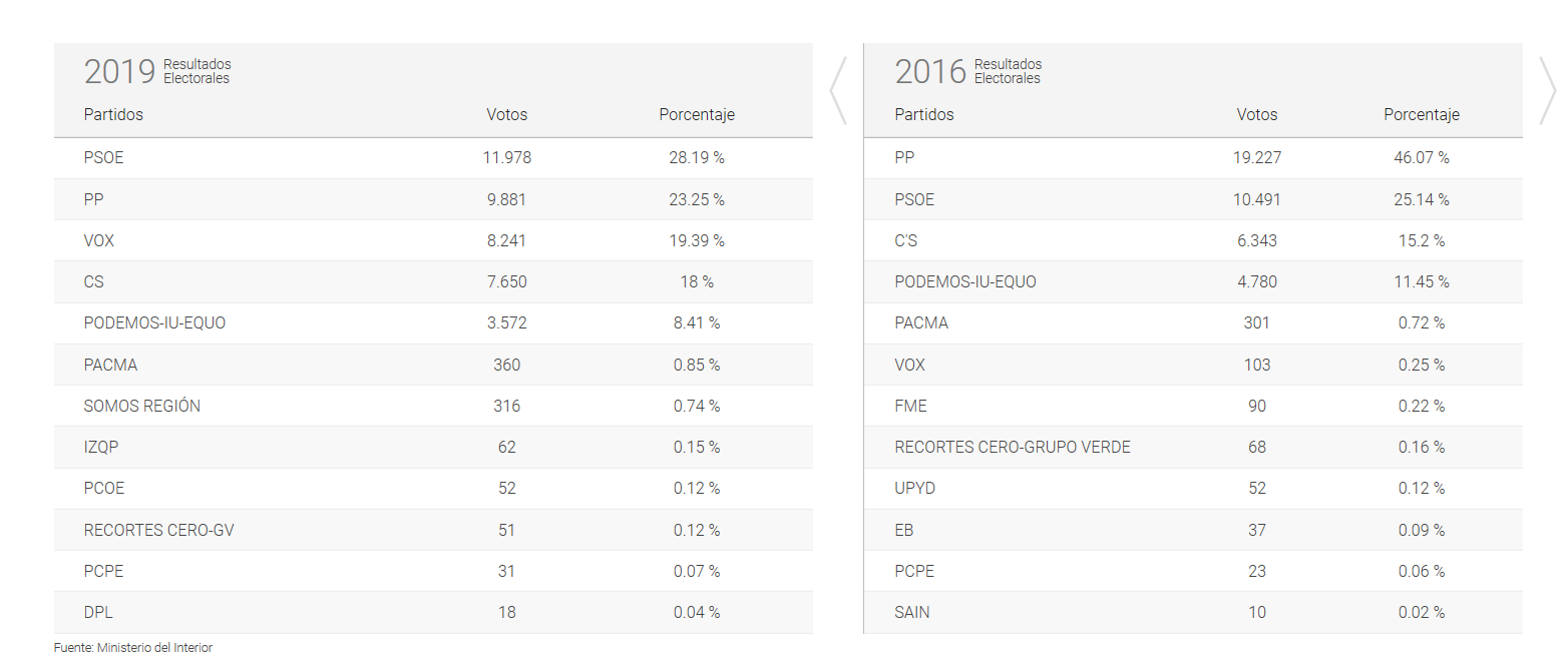 Con un 93,8% escrutado en el municipio de Lorca, la sorpresa de la noche en estas Elecciones Generales la ha dado VOX, la forma de ultraderecha irrumpe con fuerza en el municipio y se queda a a poco más de 1.000 votos de diferencia con el Partido Popular.