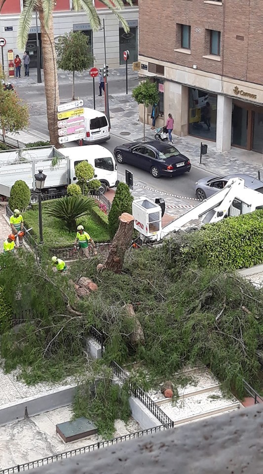 La polémica de la tala de árboles en la ciudad de Lorca ha resucitado, tras esta mañana de jueves, 13 de junio de 2019, haberse talado un árbol longevo que presidía la plaza de la Bordadora.