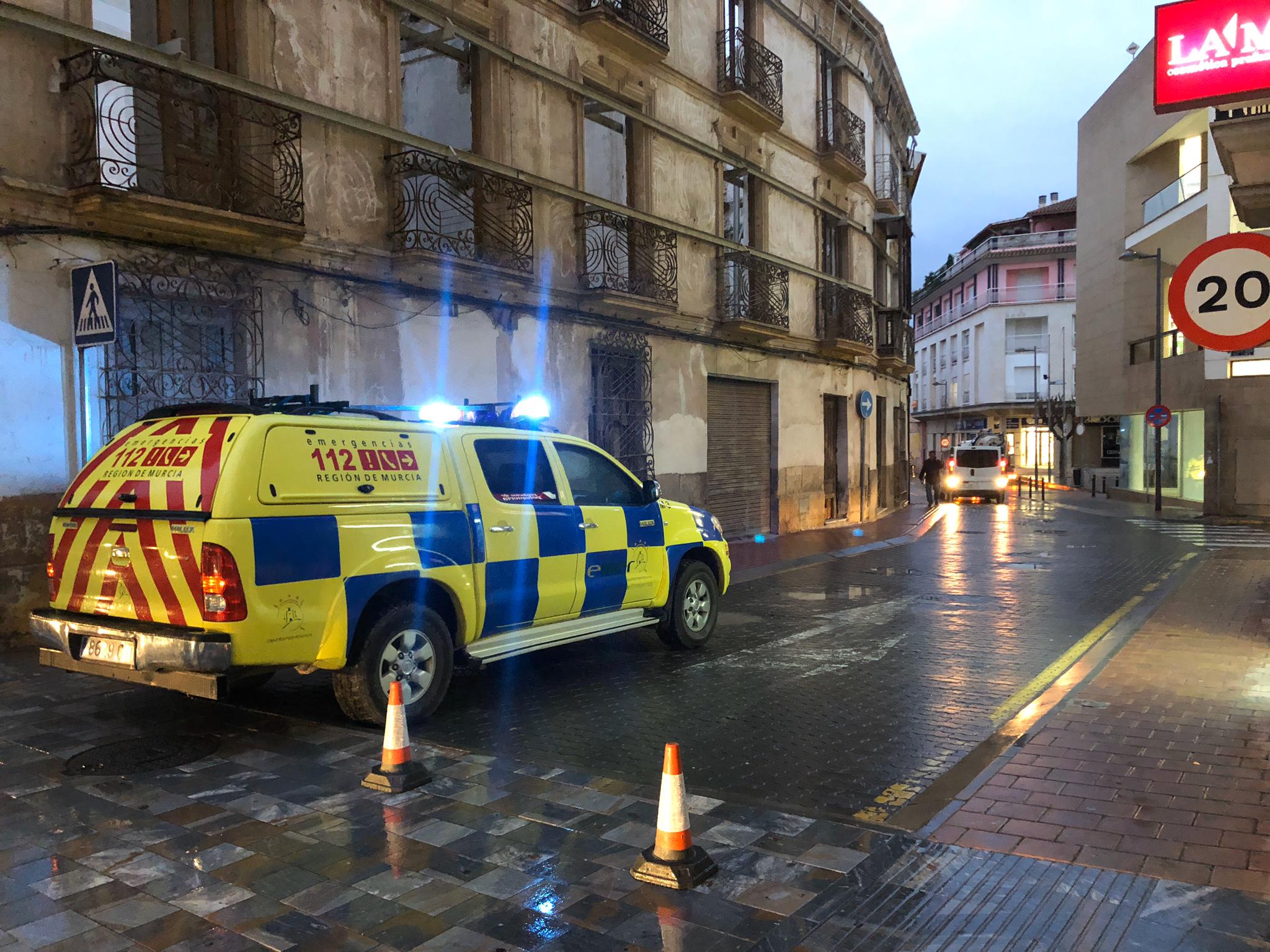 Acordonan carril de Caldereros (Lorca) por desprendimiento de fachada