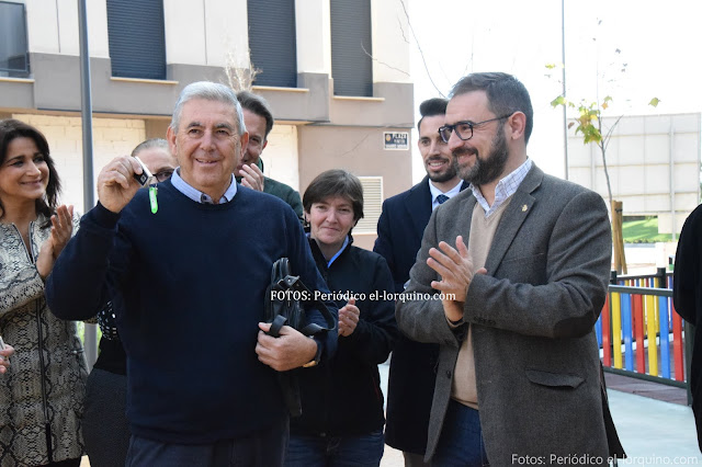30 de enero de 2020. El alcalde de Lorca, Diego José Mateos, ha hecho entrega, esta mañana, junto al director general de la CARM, José Francisco Lajara, de las llaves de las seis viviendas de propiedad municipal situadas en el Barrio de San Fernando a diversos colectivos sociales del municipio.