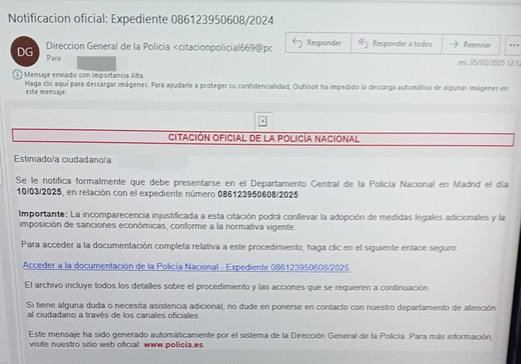 La Policía Nacional ha informado sobre la detección de un envío masivo de correos electrónicos fraudulentos en la Región de Murcia, en los que se suplanta su identidad para citar oficialmente a los ciudadanos.