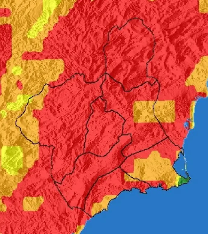 Riesgo extremo de incendios forestales en casi toda la Región de Murcia este miércoles